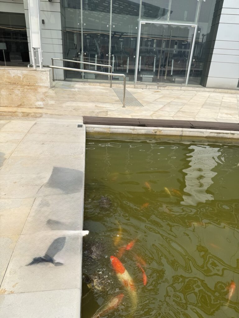 - プールとジム横の池に鯉 → スタッフが声をかけてくれて、子どもがエサやり体験