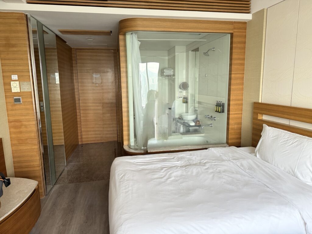 高層階に宿泊しました。部屋は広々としており、子ども連れでも荷物を広げても十分なスペースがありました。ベッドの寝心地も良く、毎晩ぐっすり眠れました。部屋の掃除も行き届いており、快適な滞在でした。プール付きホテルを希望する場合は、宿泊前に公式サイトでプールの営業状況を確認しましょう。ニーナホテル荃灣西は、屋外プールがありますが、筆者滞在時は清掃のため利用できませんでした(子連れ初香港で、ホテルでプール時間を取るつもりがなかったので、プールなしでOKと判断)。